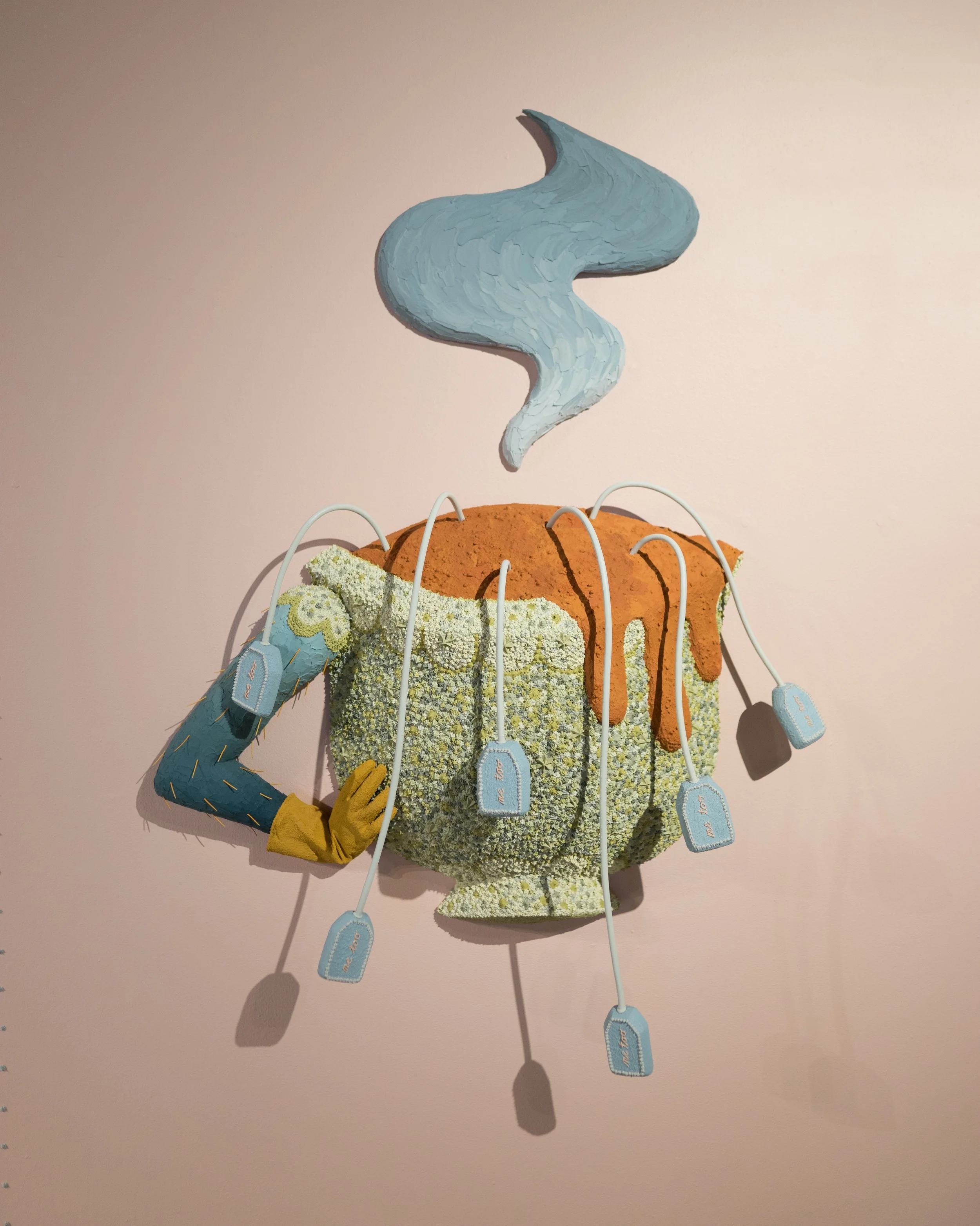 Steeping Anger, 2019, Insulation foam, caulk, acrylic, vinyl tubing, wire, 132 x 101.6 x 30.48 cm